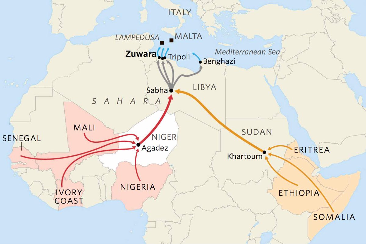 Alwasat Libya on X: “Map of Major Migration routes to #Libya on